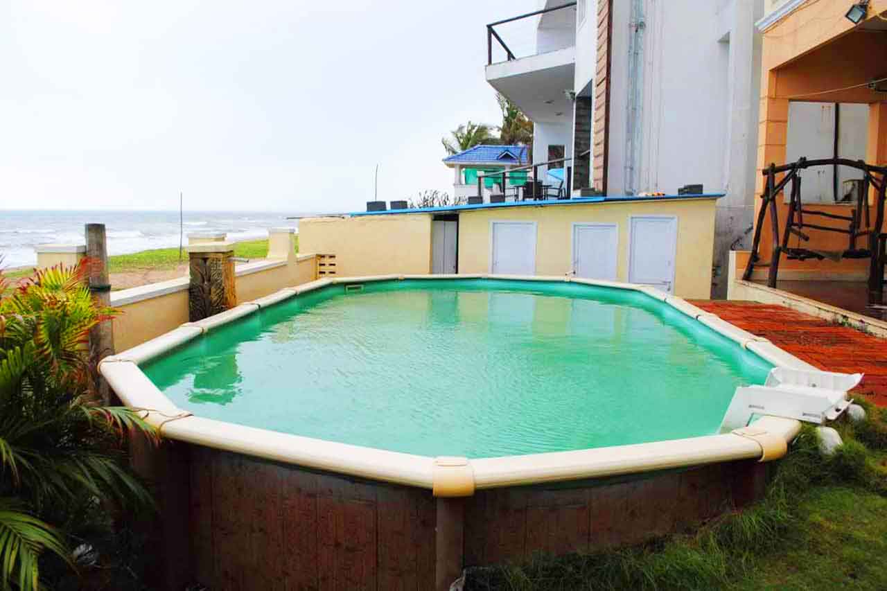 This Beach House in Chennai has 3 luxury air conditioned bedrooms with attached bathrooms and the full beach house in ECR is fully furnished with all the amenities beach view sitting area, swimming pool with 4ft depth, LED televisions in all the three bedrooms, kitchen setup with basic utensils, play room in the basement with Billiards, arrow throw, chess, carrom etc.,